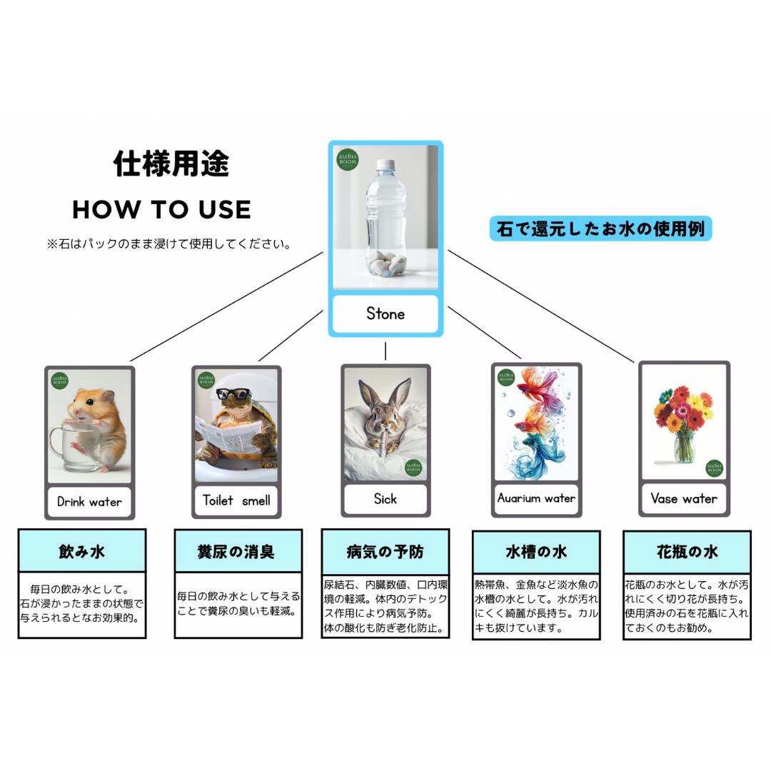 この製品はゼオライトを使った天然成分100%の自然カートリッジで小動物の体を錆びない健康な状態に保つお水に還元することができます!